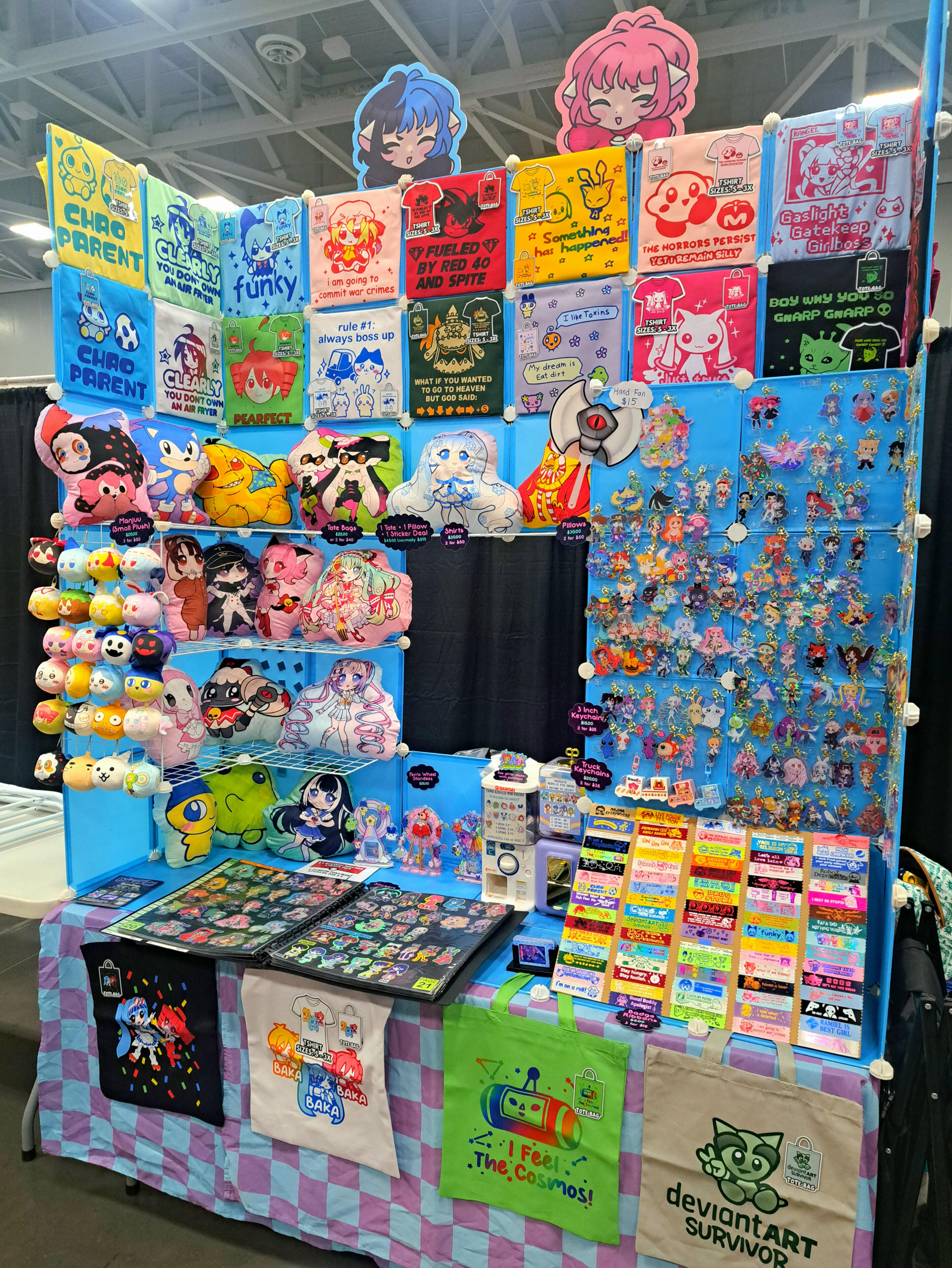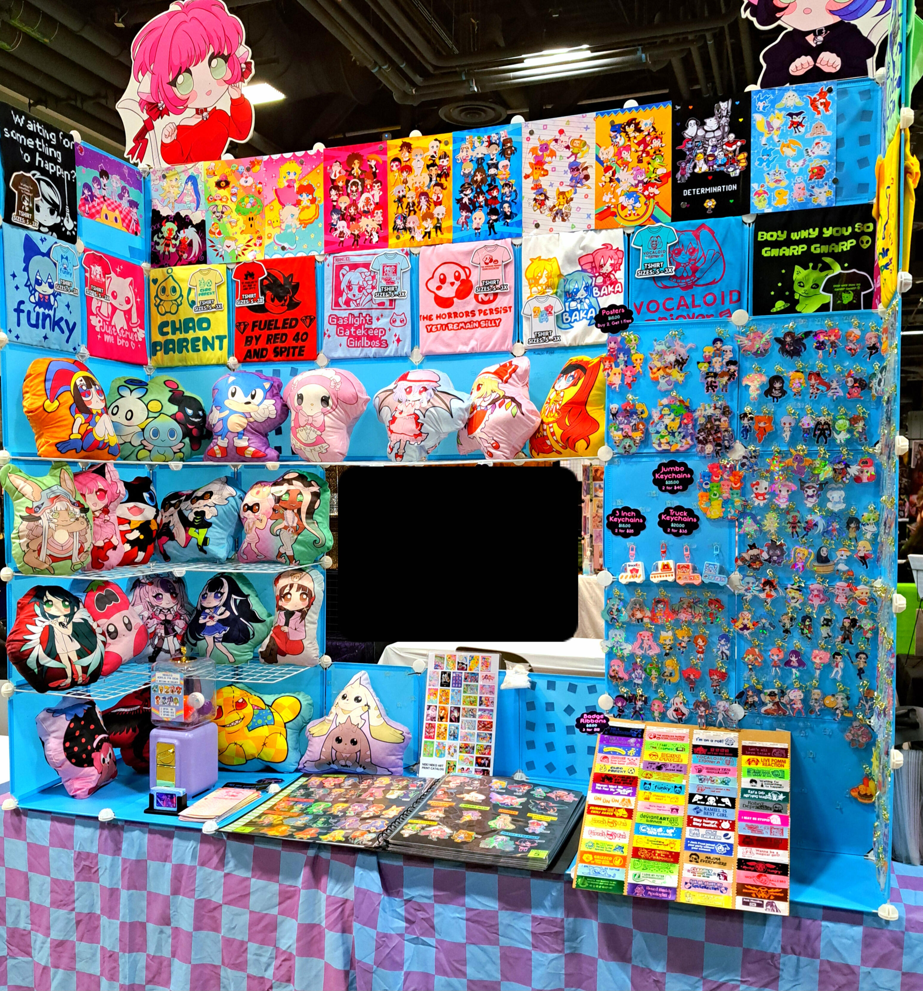 Examples of merchandise I have independently desinged and produced, featuring my art.Products I have experience making include: Stickers, Acrylic Charms + Standees, Pillows, Washi Tape, Badge Ribbons, Shirts, Tote Bags